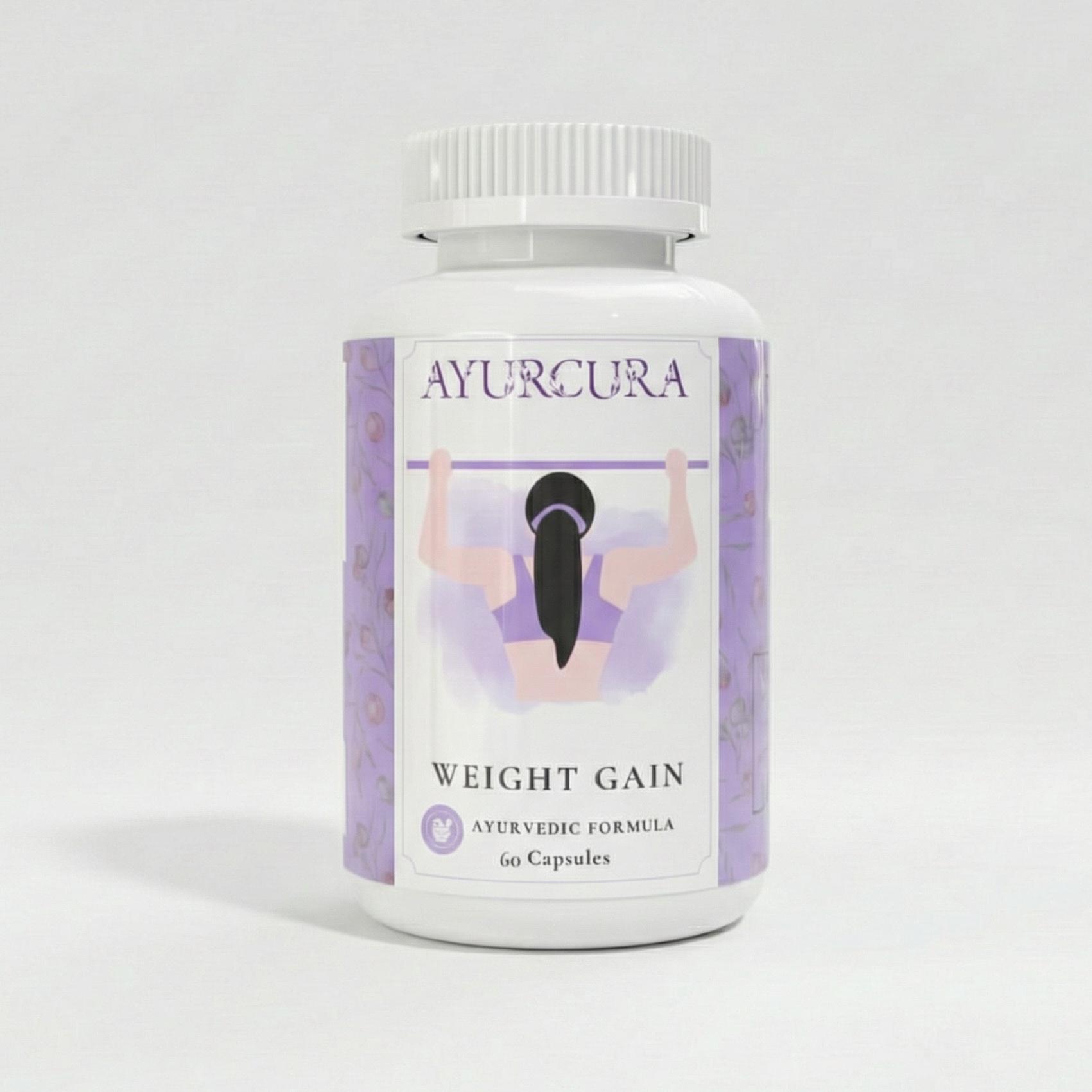 AyurCura Weight Gain Capsules are formulated to help individuals achieve healthy, balanced weight gain by improving nutrient absorption, digestion, and muscle nourishment.